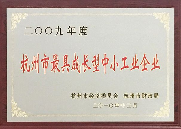二〇〇九年度杭州市最具成長(zhǎng)型中小工業(yè)企業(yè)