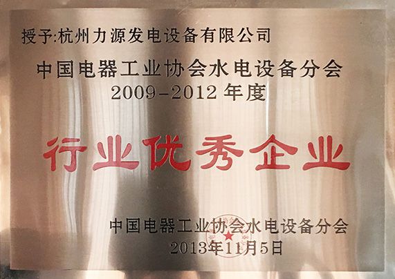 中國電器工業(yè)協(xié)會水電設(shè)備分會2009-2012年度行業(yè)優(yōu)秀企業(yè)